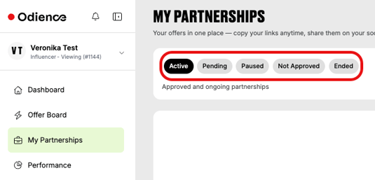 You may view the links any time from the My Partnerships tab or the Dashboard under the Partnerships box.