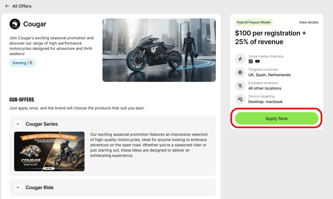 If the offer contains sub-offers or multiple landing pages, you can see them in the offer description.