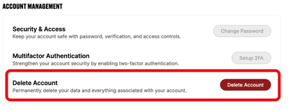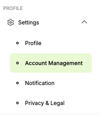 1. Navigate to Settings > Account Management tab in the sidebar menu.