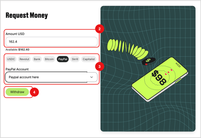 To cash out your earnings, you need to submit a payment request to your available funds.