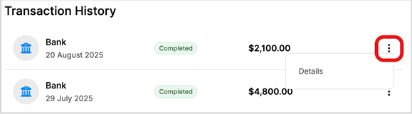 To do so, click the 3-dot next to the specific transaction and in the sub-window, click View invoice.