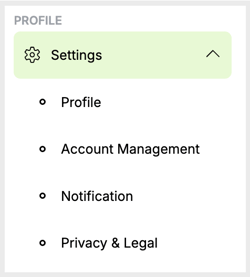 Configure and manage your account settings from the Settings tab in the sidebar menu